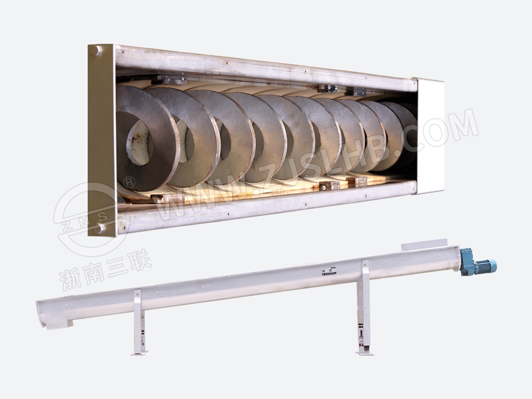 WLS型无轴螺旋输送机由驱动装置、无轴螺旋体、U型槽、内衬板、盖板、进料斗、排料口等组成。其工作原理为:物料从进料斗进入输送机内,由旋转的无轴螺旋推至出料口送出。